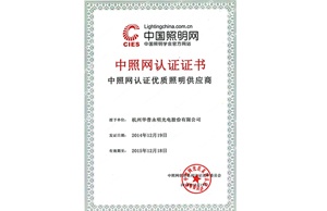 中国照明网优质供应商认证证书